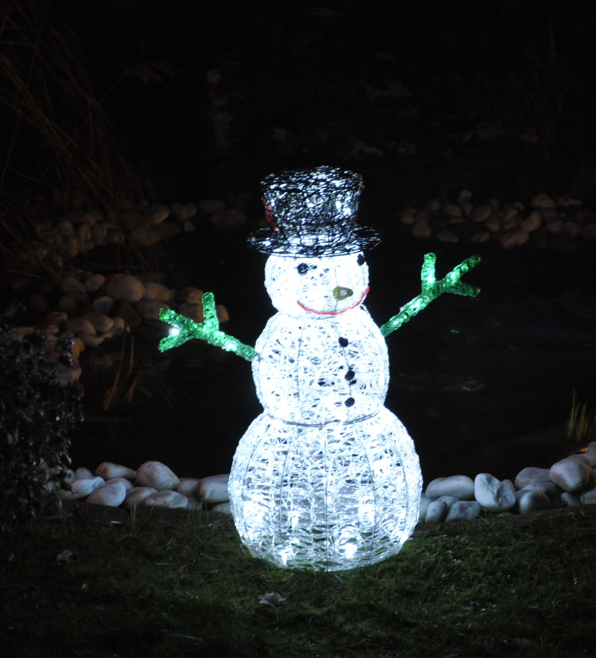„Ein Schneemann ist eine Figur aus Schnee, die schemenhaft einen Menschen darstellt. Normalerweise besteht ein Schneemann aus drei verschieden großen aufeinandergestapelten Schneebällen, die […] den Rumpf sowie den Kopf darstellen. Als Gesicht werden meist Kieselsteine oder Kohlenstücke als Augen, eine Karotte oder ein Zweig als Nase und mehrere kleine Kieselsteine als Mund verwendet. Oft bekommt so ein Schneemann außerdem einen Topf oder Eimer als Hut auf den Kopf gesetzt. Manche Leute verzieren den Schneemann außerdem mit einem Schal. Kleinere Schneebälle werden an den Seiten angebracht, um die Arme darzustellen und eventuell einen Reisigbesen zu halten. Manchmal wird auch für jeden Arm ein Zweig in die Schneekugeln gesteckt.“ (Quelle: wikipedia.org)
