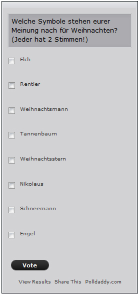 Bis Mittwoch, 08.12.2010, konnte an dieser Stelle über Folgendes abgestimmt werden: