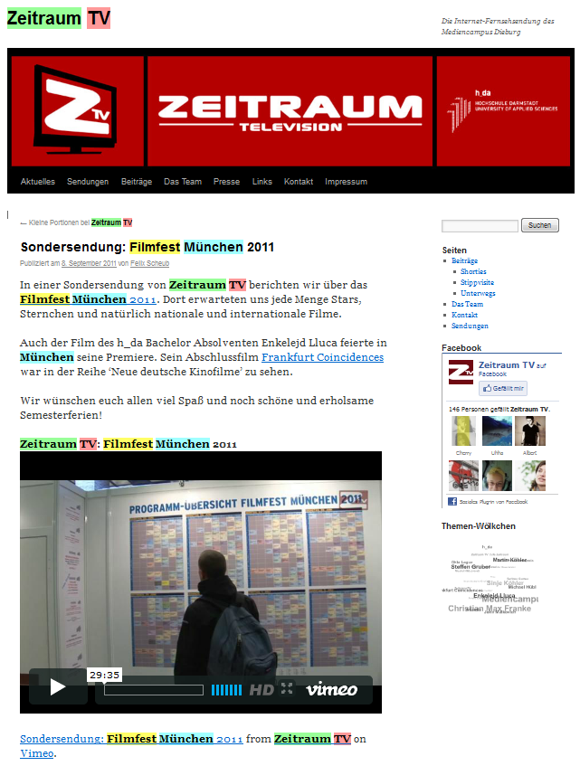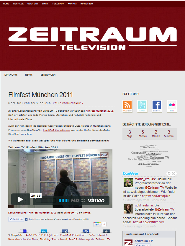 Mit Kommilitonen und Kommilitoninnen aus meinem Online-Journalismus-Jahrgang habe ich mich zudem an die Arbeit gemacht und Zeitraum Television eine modernere, ansprechendere und strukturiertere Website spendiert.