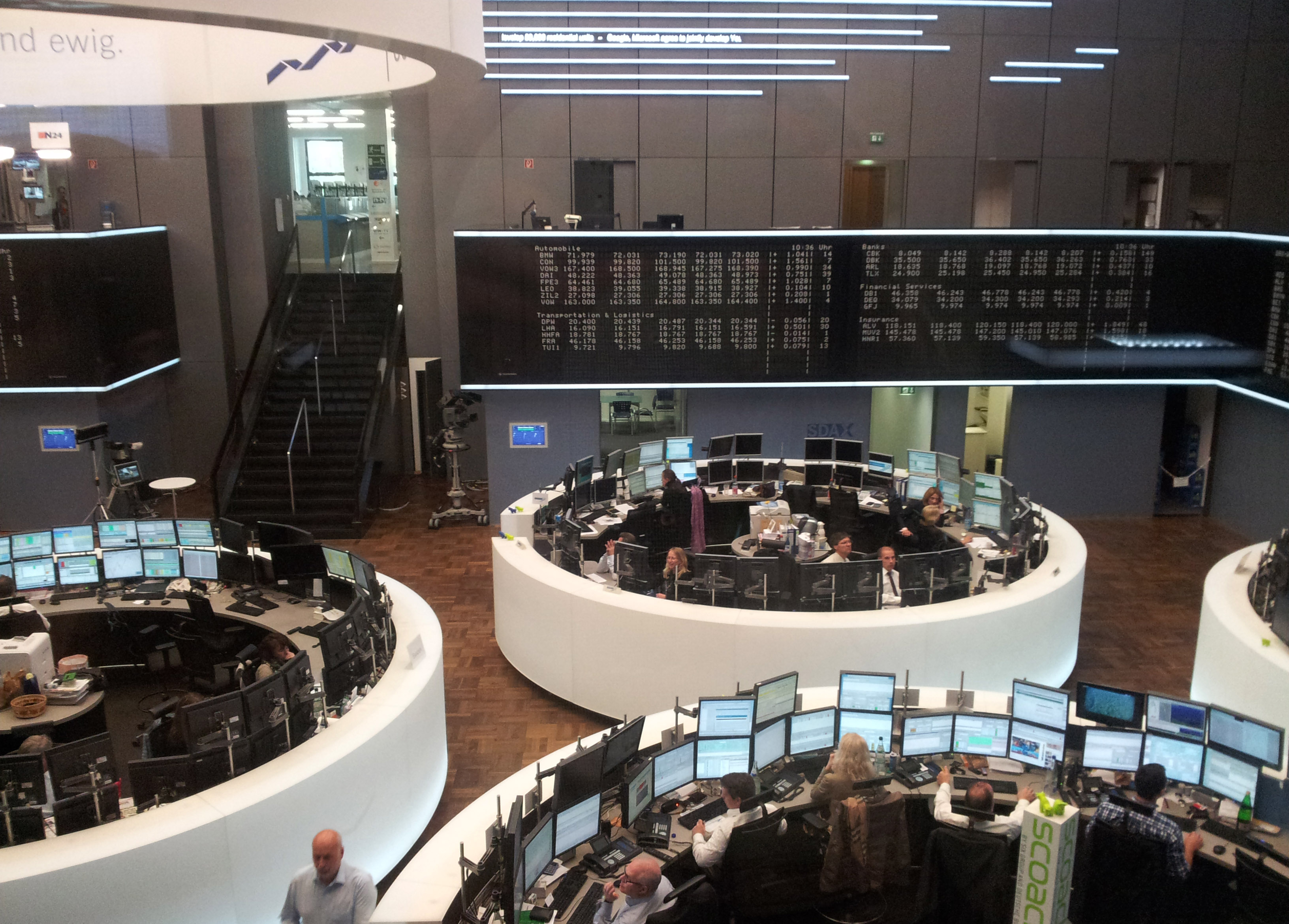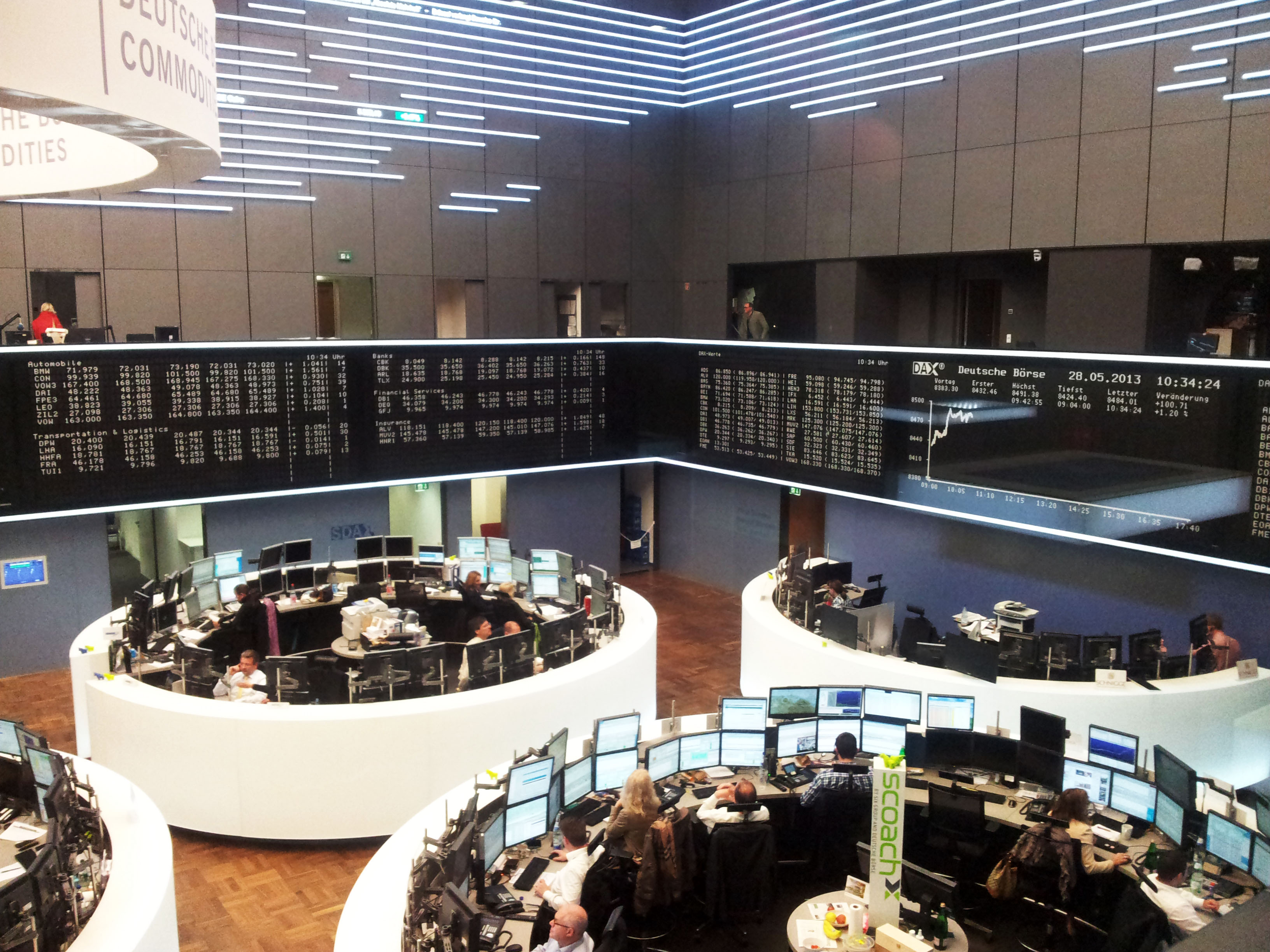 Börsennachrichten bringen ja viele Sender, sei es im Radio vom Börsenstudio der ARD, aber auch in den Fernsehsendern. Achtet doch das nächste Mal auf die Kameraperspektive, wenn die Journalisten in der Börse nicht vom Balkon aus berichten, sondern direkt vom Börsenparkett. Die Perspektive unterscheidet sich nicht wesentlich, da es in der Börse auch einen festen Kameraplatz ohne Kameramänner oder Kamerafrauen gibt. Diesen seht ihr im folgenden Bild oben links.